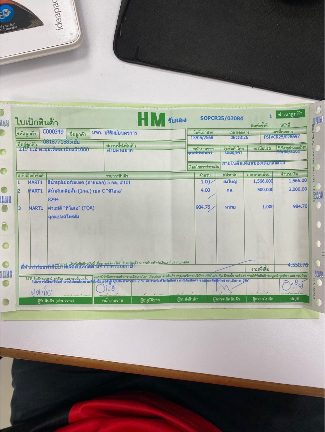 | 13 พ.ค 2568 เวลา 16:56 No. 202505057 | (ไม่ได้ตั้ง) | พี่จิ๋ม(ภาษี) | ย้าย ติดตั้งคอมและปริ้นเตอร์ ภายใน office 4 เครื่อง | สำเร็จ | |