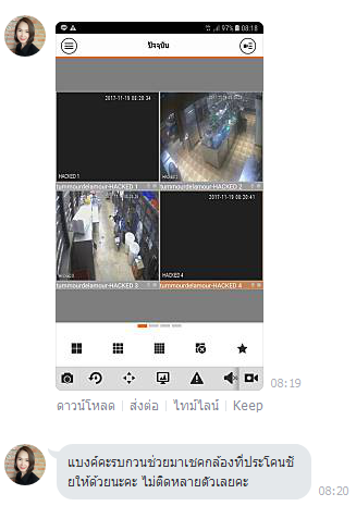 | 19 พ.ย 2560 เวลา 08:20 | เครื่องบันทึก-watashi | ผจก.ตำมั่ว ปคช. | แบงค์คะรบกวนช่วยมาเชคกล้องที่ประโคนชัยให้ด้วยนะคะ ไม่ติดหลายตัวเลยคะ | สำเร็จ | |