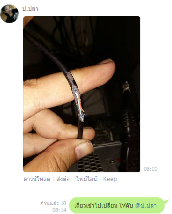 | 12 พ.ย 2560 เวลา 09:00 | (ไม่ได้ตั้ง) | Tummour BRY | หนูกัดสายเมาส์ ไม่มีใช้งาน รบกวนเข้ามาเปลี่ยนให้ด้วยค่ะ | สำเร็จ | |